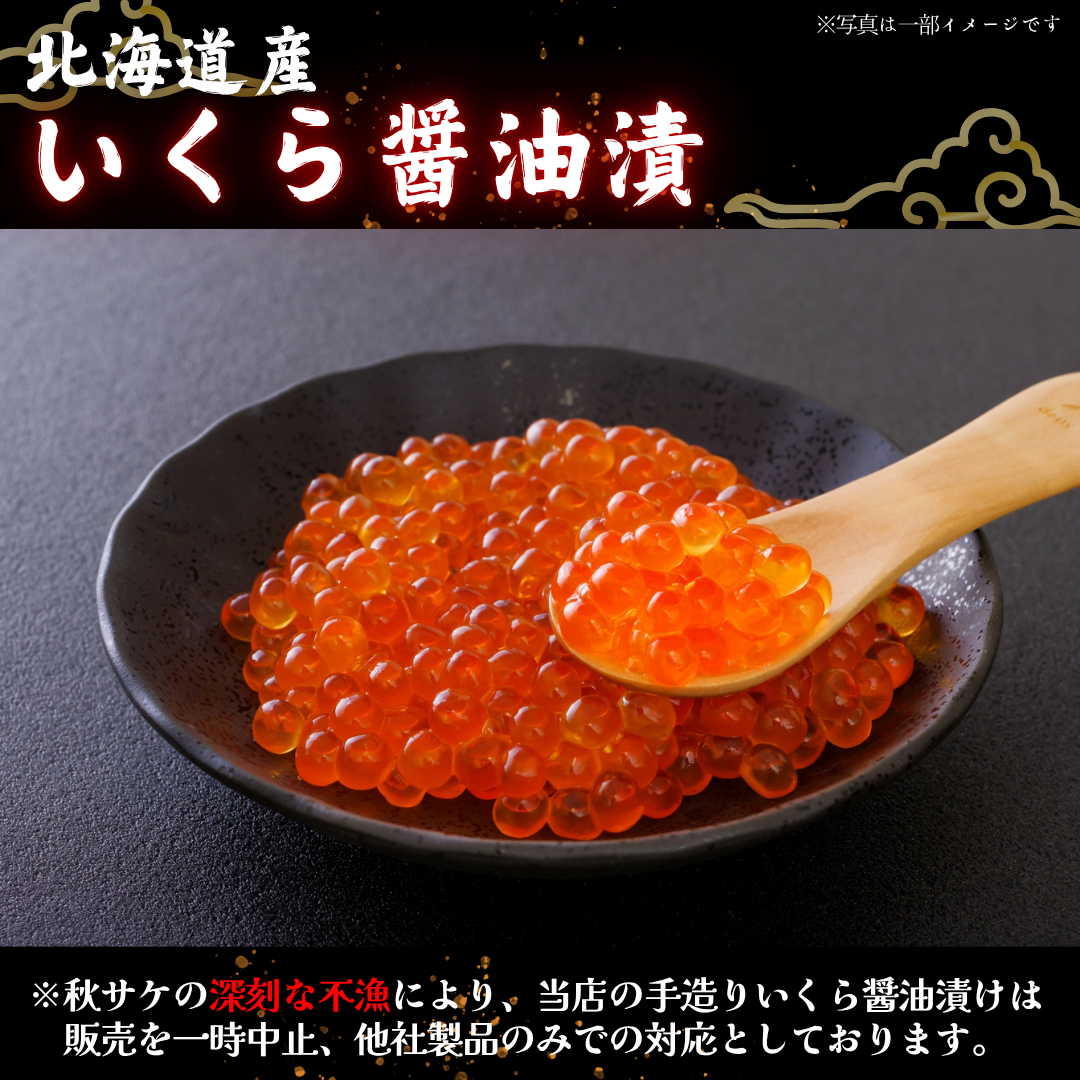 北海道産 いくら醤油漬 北海道産 いくら醤油漬(3-100)250g在庫状態 : 在庫有り ¥7,500(税込) 数量個 500g在庫状態 : 在庫有り ¥15,000(税込) 数量 【発送時保管温度帯:冷凍】北海道産の新鮮な秋鮭の卵を使用した醤油漬けのいくらです秋サケの深刻な不漁により、当店の手造りいくら醤油漬けは販売を一時中止、他社製品のみでの対応としております。